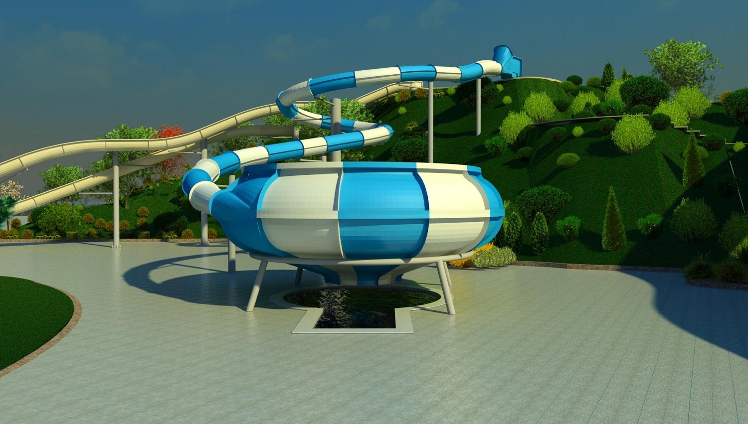 Space Hole is the new and exciting slide from Park Invest. It is engineered to create ultimate excitement and is one largest rides for speed riding. You experience three different levels of excitement in one slide. You first experience the excitement of an enclosed tube exiting into a huge open bowl and continuing with several whirls around the sides of the bowl with centrifugal force; and finally ending with a big splash into the ‘hole’. Space Hole is a great addition to any waterpark. We also can put a ‘lid’ or cover on it and we then call it Aladdin’s Lamp.